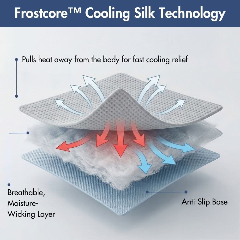 Fabriquée avec le tissu rafraîchissant Frostcore™, sa surface absorbe la chaleur au contact pour offrir une sensation de fraîcheur instantanée et vivifiante, idéale pour les chaudes journées d'été.