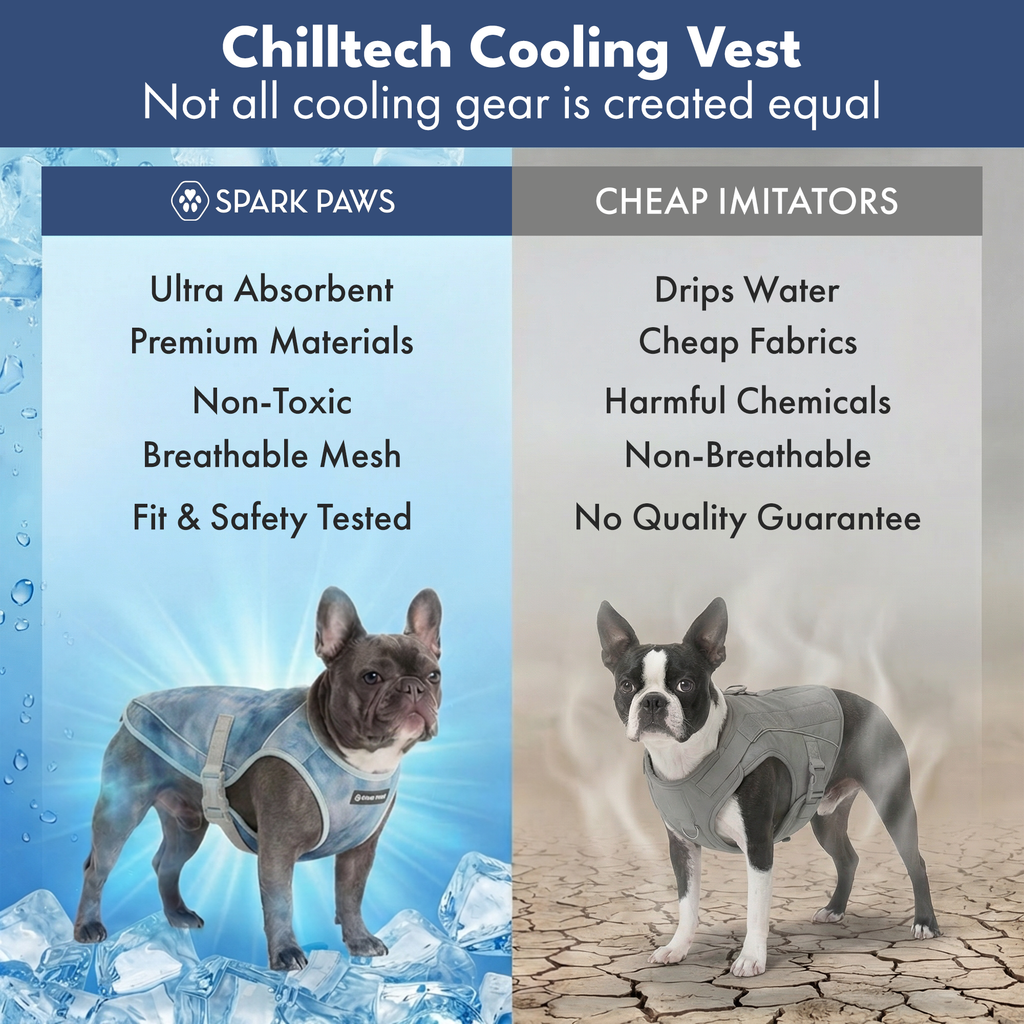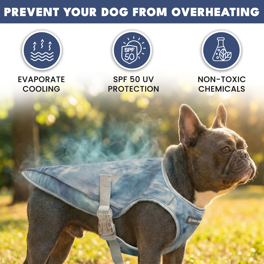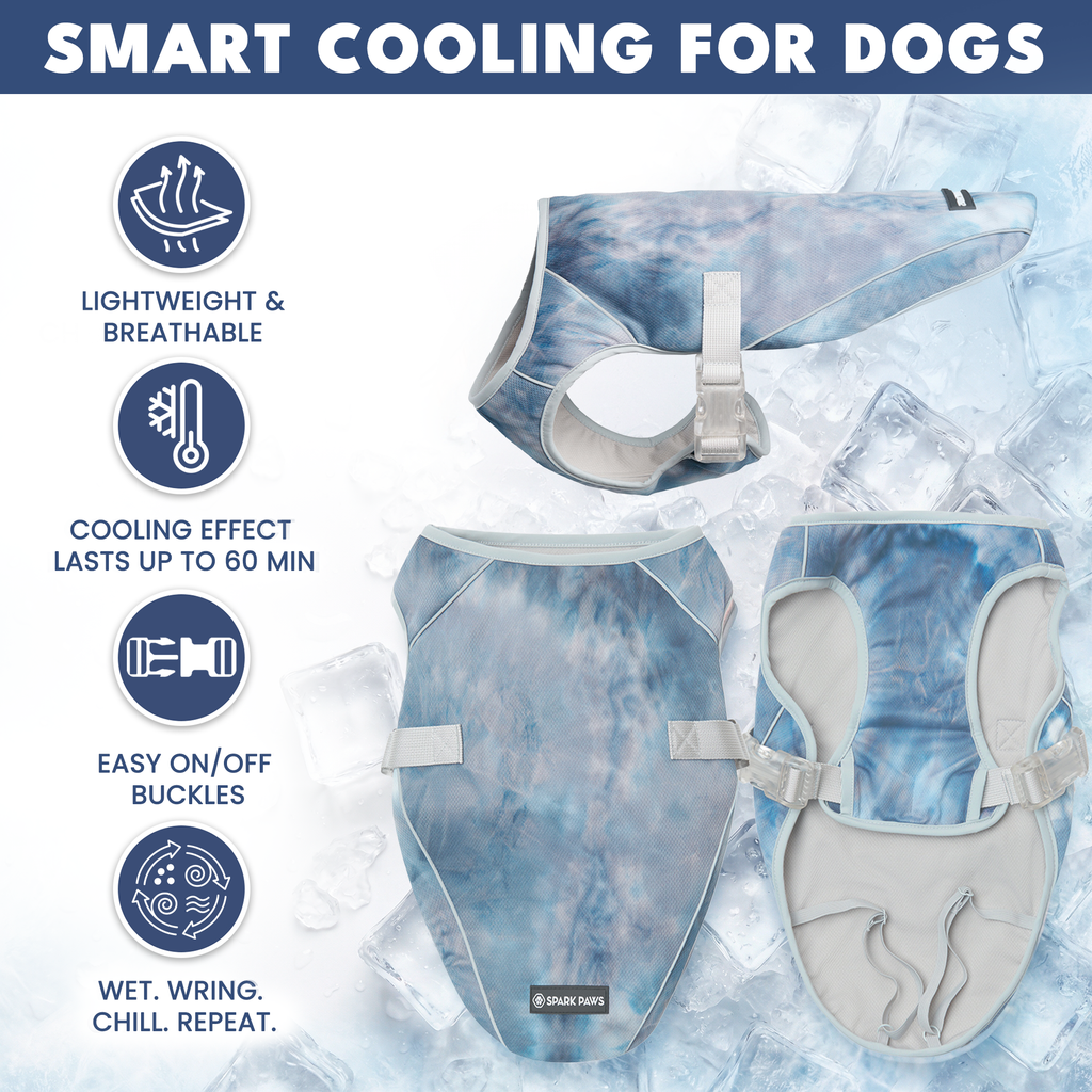 La veste rafraîchissante Chilltech est un accessoire essentiel pour les chiens qui surchauffent facilement en été. La veste rafraîchissante réduit la température corporelle de votre chien grâce à l'évaporation. Il vous suffit de la mouiller dans l'eau, de l'essorer et de la mettre sur votre chiot. Le tissu est spécialement conçu pour retenir l'eau, ce qui crée un effet rafraîchissant. Les couches de maille permettent à l'air de circuler, tout en déviant la lumière du soleil, offrant ainsi une protection UV et un ombrage supplémentaires.
