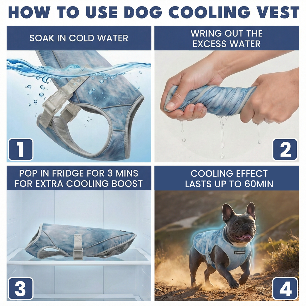 Mettez la veste humide au congélateur pendant 3 à 5 minutes pour les journées très chaudes et pour obtenir un effet rafraîchissant supplémentaire.