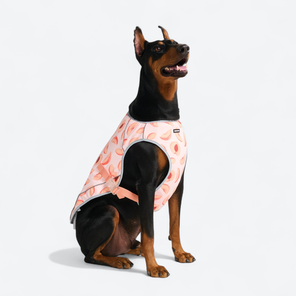 La veste rafraîchissante Chilltech est un accessoire essentiel pour les chiens qui surchauffent facilement en été. La veste rafraîchissante réduit la température corporelle de votre chien grâce à l'évaporation. Il vous suffit de la mouiller dans l'eau, de l'essorer et de la mettre sur votre chiot. Le tissu est spécialement conçu pour retenir l'eau, ce qui crée un effet rafraîchissant. Les couches de maille permettent à l'air de circuler, tout en déviant la lumière du soleil, offrant ainsi une protection UV et un ombrage supplémentaires.