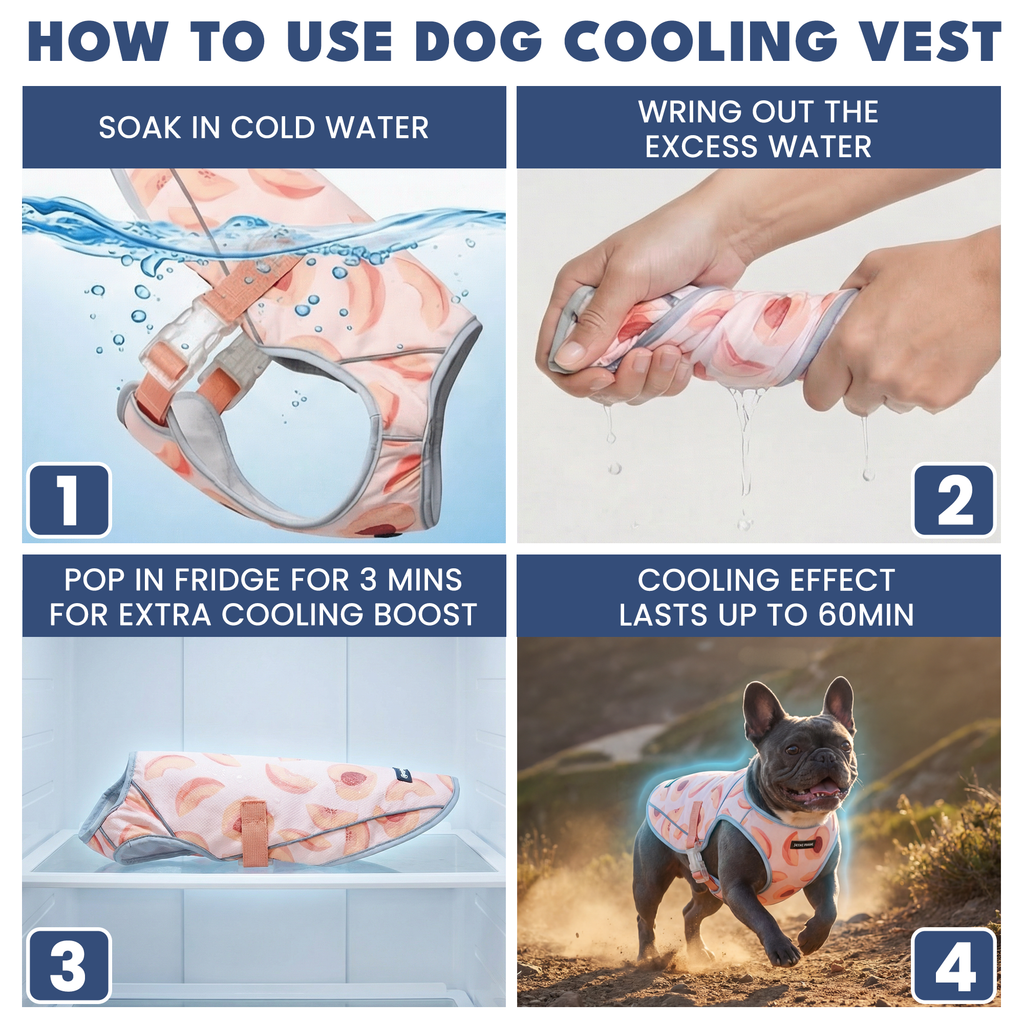 Mettez la veste humide au congélateur pendant 3 à 5 minutes pour les journées très chaudes et pour obtenir un effet rafraîchissant supplémentaire.