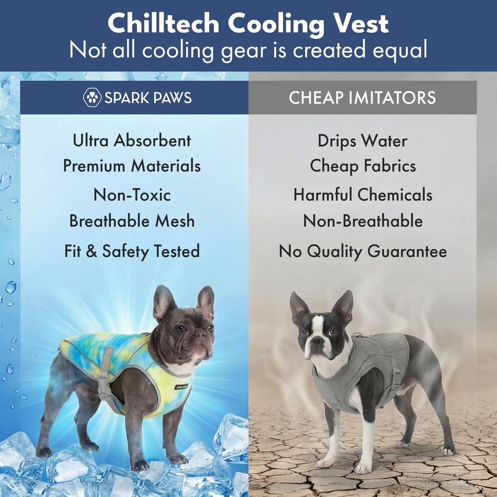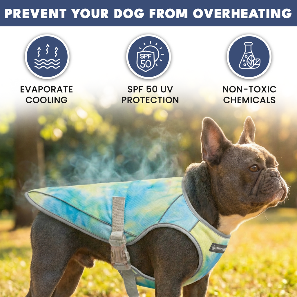 La veste rafraîchissante Chilltech est un accessoire essentiel pour les chiens qui surchauffent facilement en été. La veste rafraîchissante réduit la température corporelle de votre chien grâce à l'évaporation. Il vous suffit de la mouiller dans l'eau, de l'essorer et de la mettre sur votre chiot. Le tissu est spécialement conçu pour retenir l'eau, ce qui crée un effet rafraîchissant. Les couches de maille permettent à l'air de circuler, tout en déviant la lumière du soleil, offrant ainsi une protection UV et un ombrage supplémentaires.