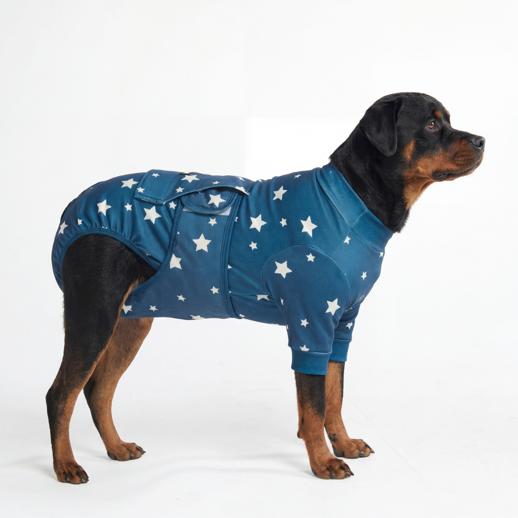 Dites adieu à la « collerette de la honte » pour une récupération plus confortable et sans stress. Notre body chirurgical offre une barrière douce et sécurisée qui protège les plaies tout en permettant à votre chien de bouger, manger et dormir normalement.