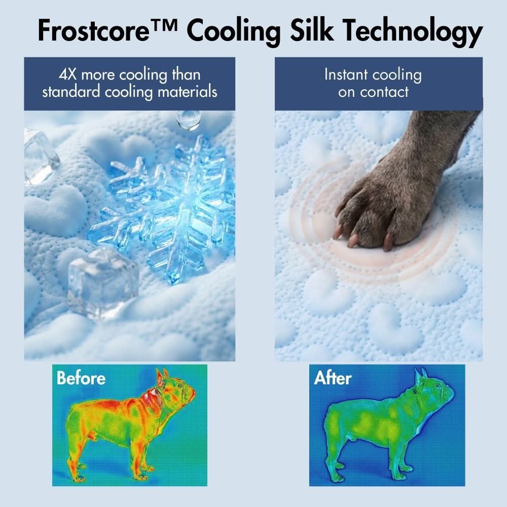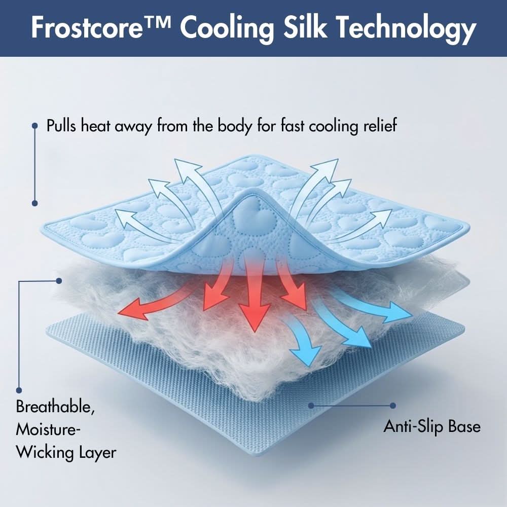 Fabriquée avec le tissu rafraîchissant Frostcore™, sa surface absorbe la chaleur au contact pour offrir une sensation de fraîcheur instantanée et vivifiante, idéale pour les chaudes journées d'été.