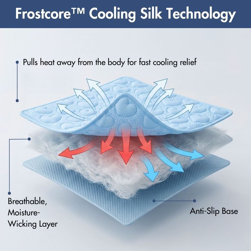 Fabriqué avec le tissu rafraîchissant Frostcore™, sa surface absorbe la chaleur au contact pour offrir une sensation de fraîcheur instantanée, idéale pour les chaudes journées d'été.