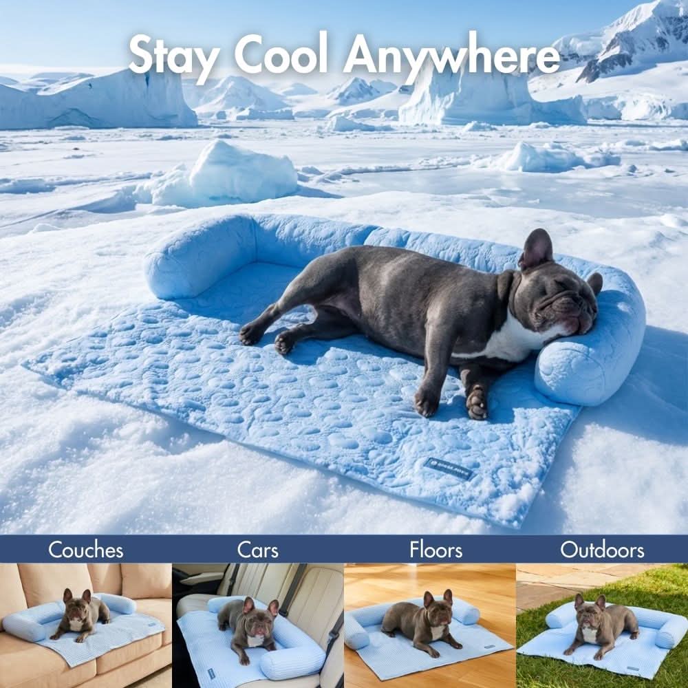 Léger et s'utilise partout : du canapé au sol, ou dans la voiture. Un espace de détente idéal pour que les chiens se relaxent au frais.