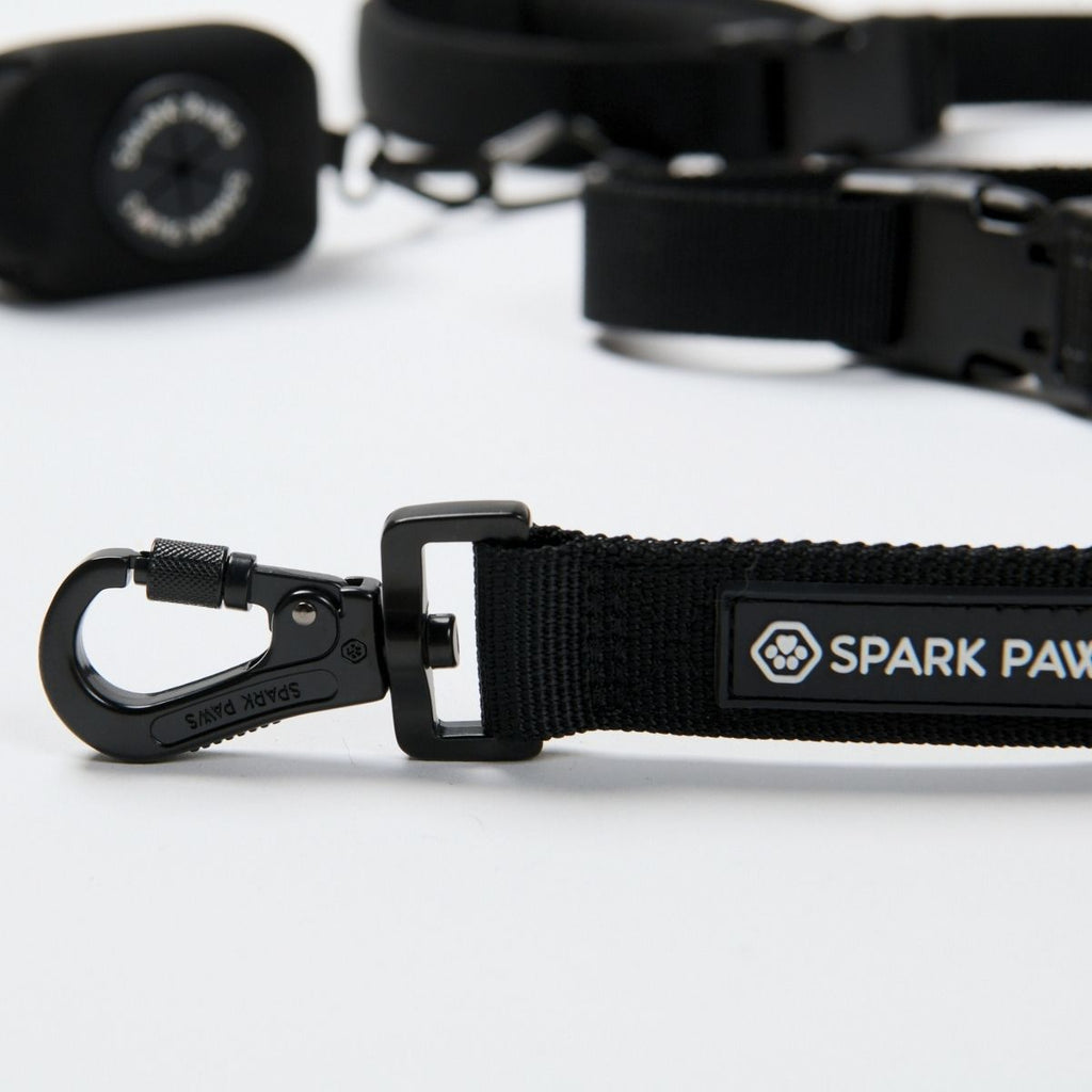 Une seule laisse pour les promenades, les courses et les trajets en voiture – assortie à vos accessoires Spark Paws.