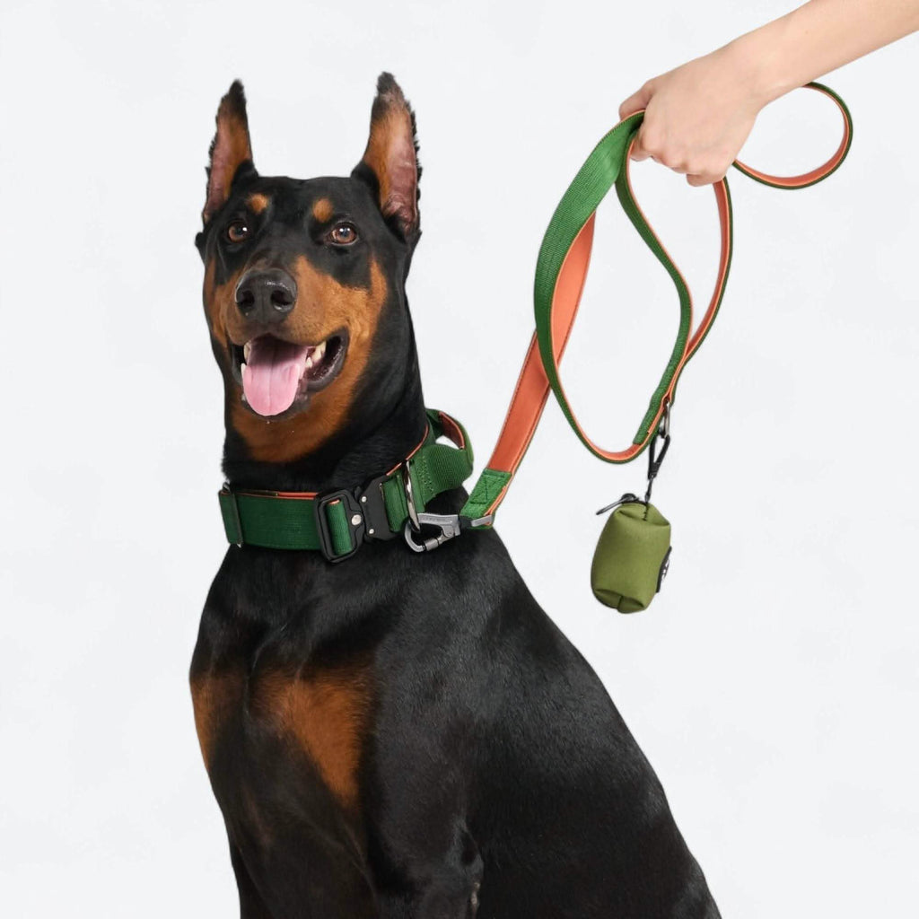 Chaque ensemble comprend un collier tactique pour chien, une laisse pour chien en néoprène assortie et un porte-sac à déjections.
